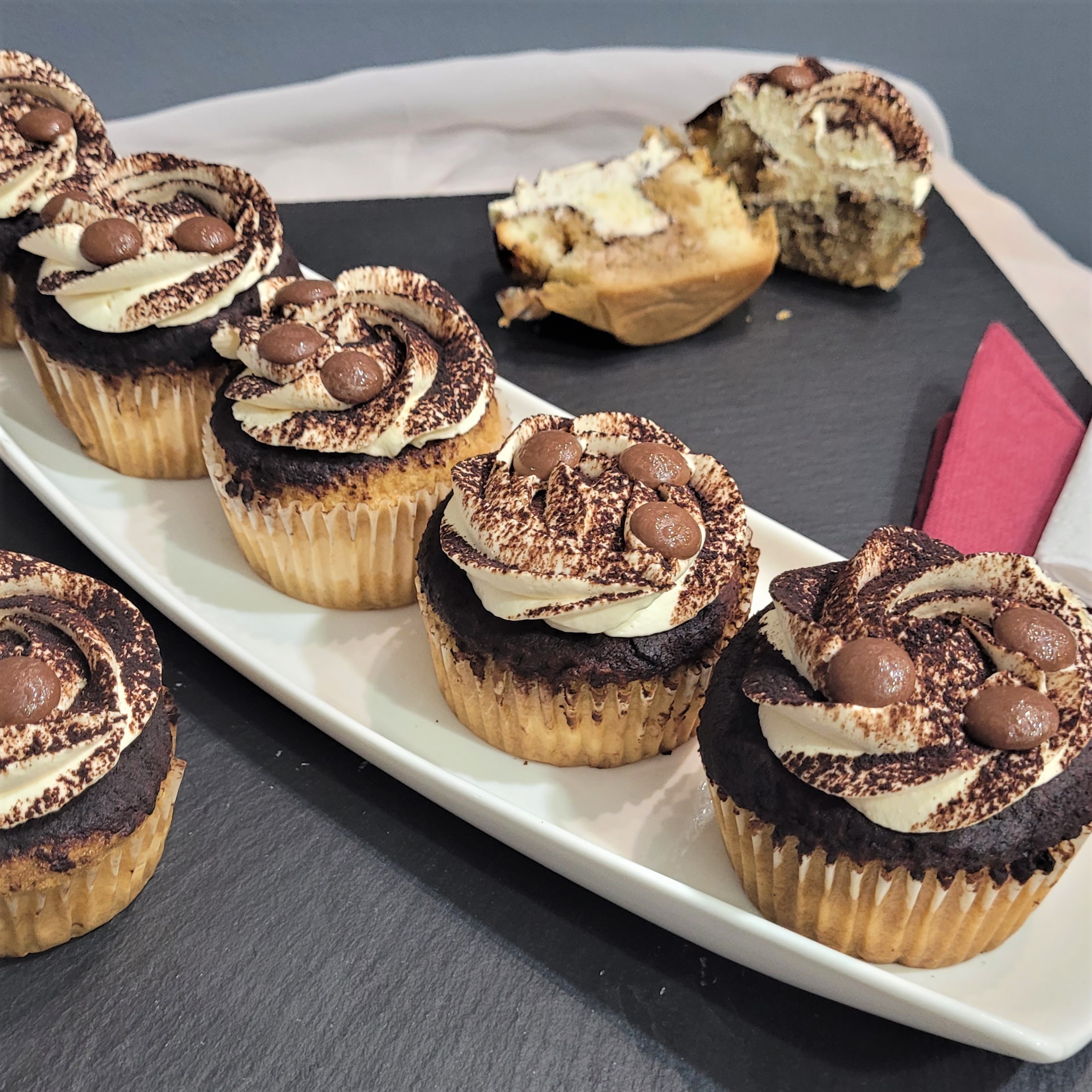 Blat pufos de vanilie însiropat cu cafea și cremă mascarpone.