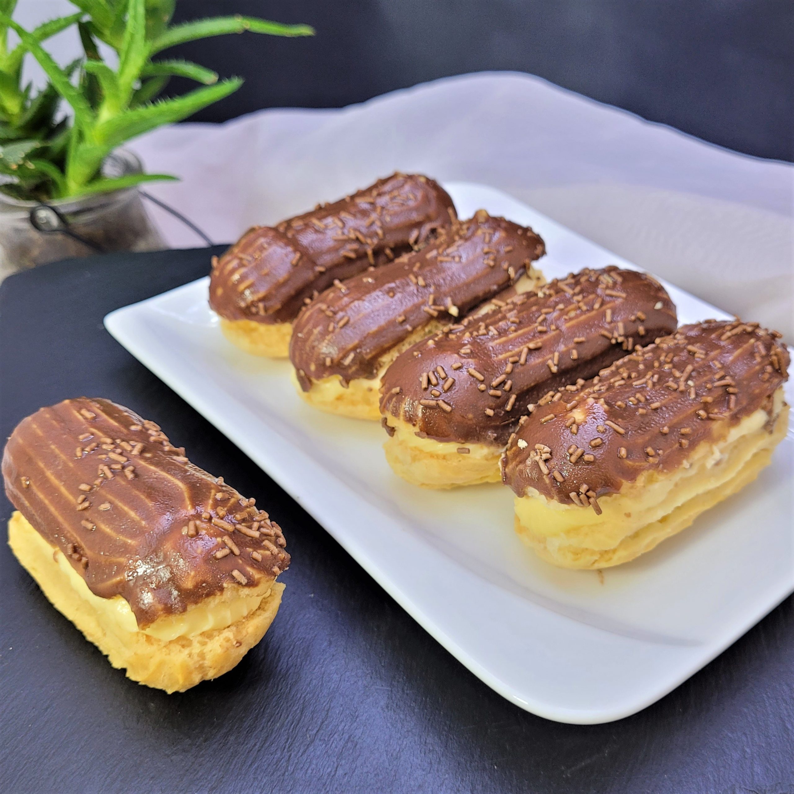 Choux-uri umplute cu cremă de vanilie preparată după rețeta