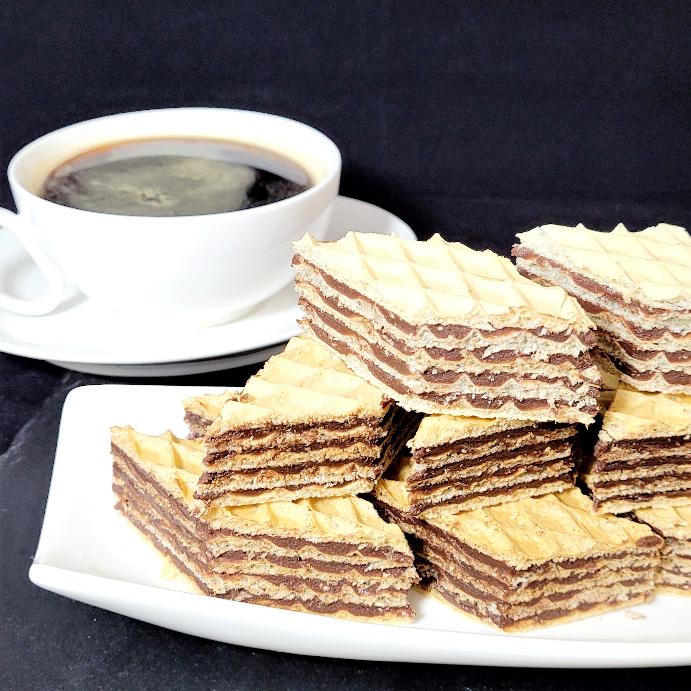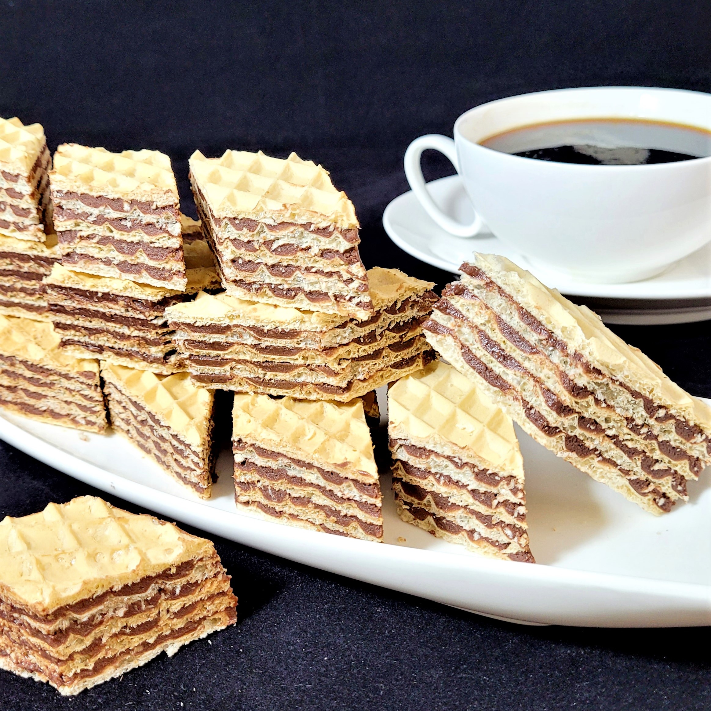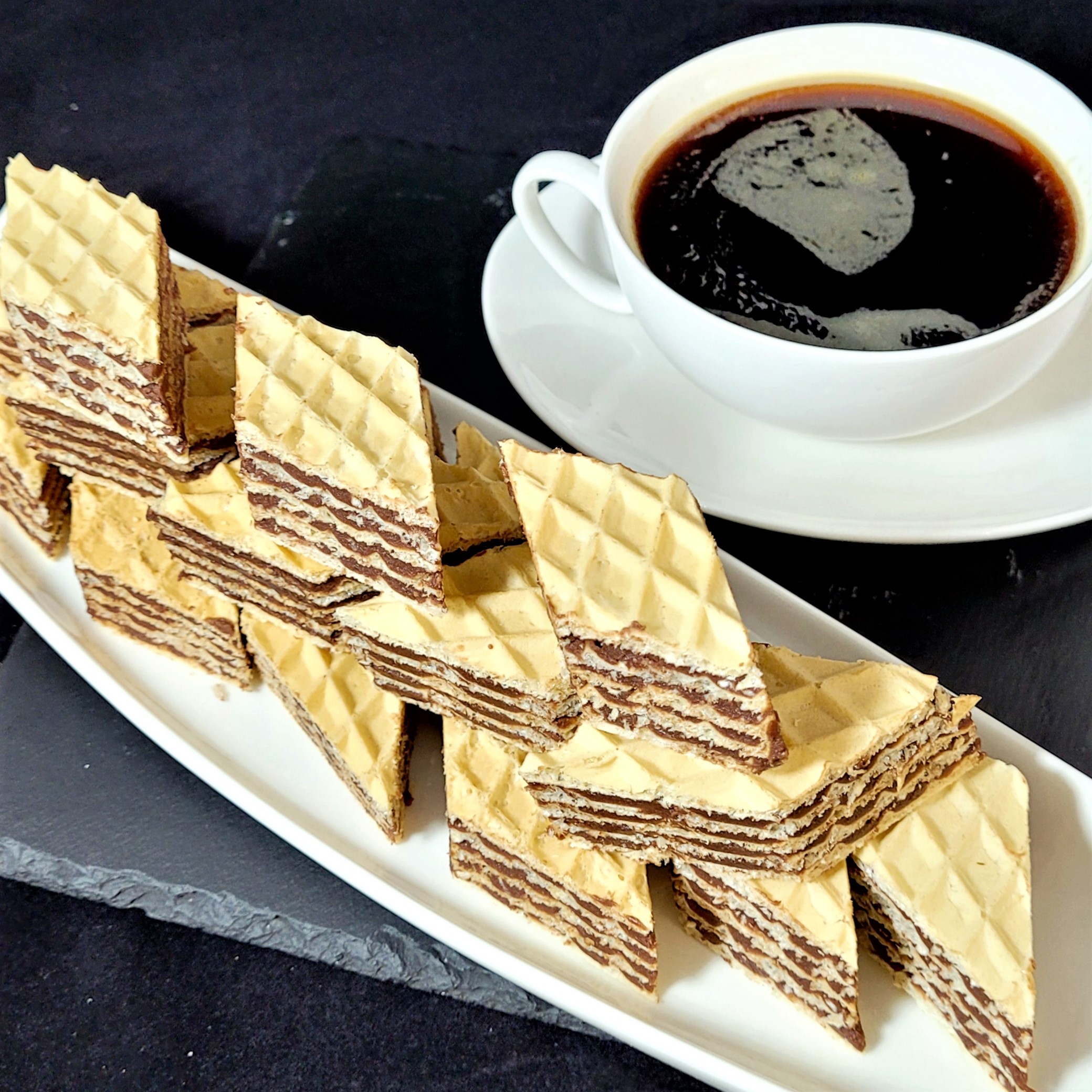 Foi de napolitane umplute cu ciocolată de casă pe bază de lapte praf.